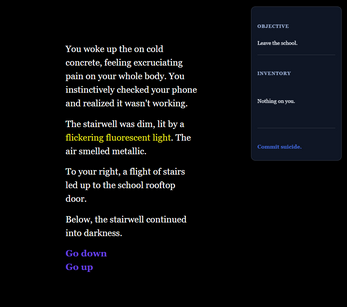 - Psychological horror interactive fiction made in Twine
